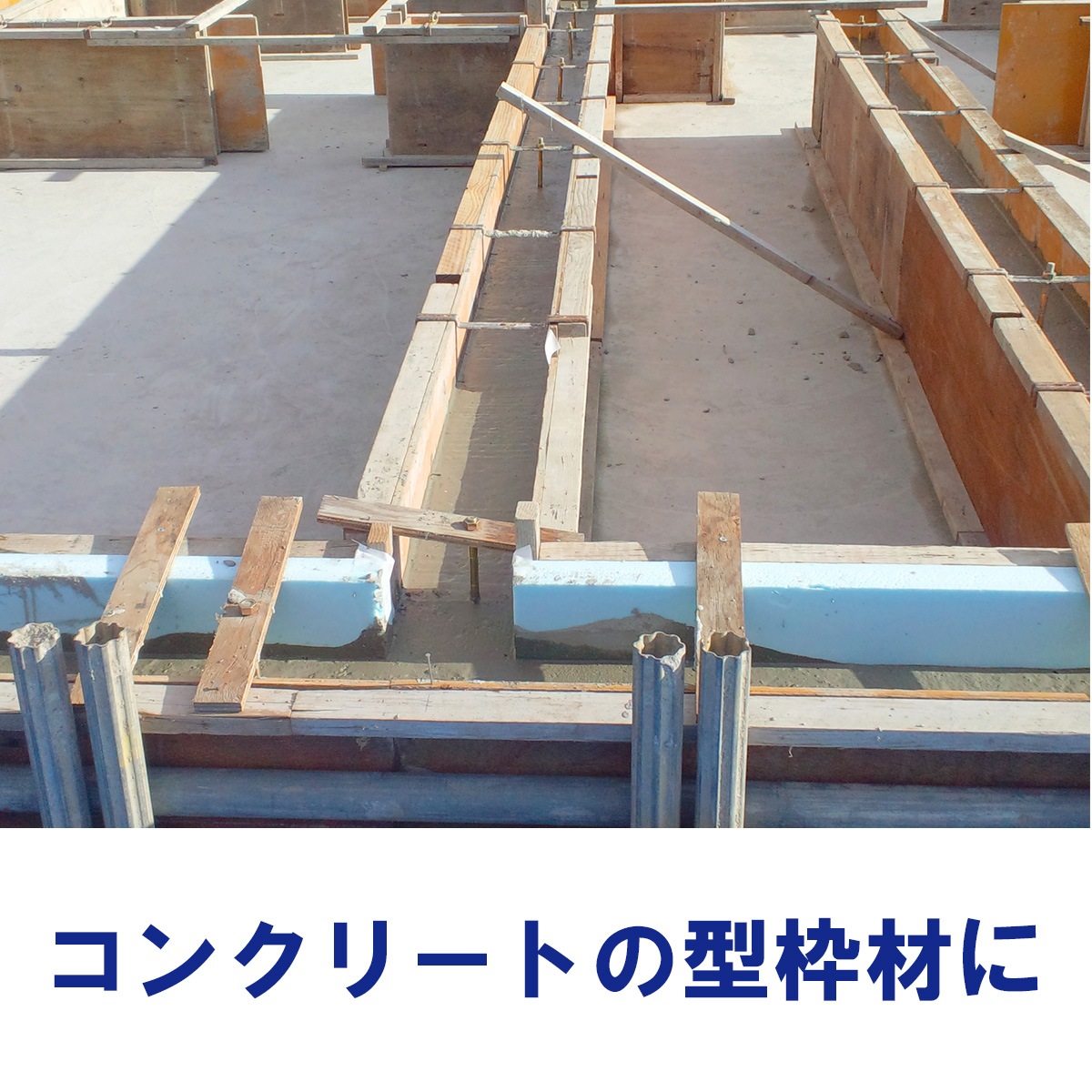 主に住宅の基礎などコンクリートを流し込むための型枠材として使用するため、圧力に耐えることができます。