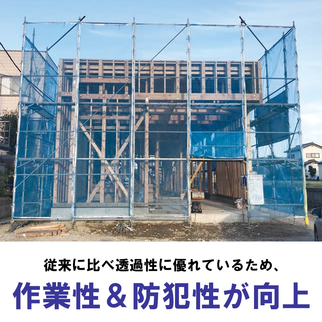 ・従来のメッシュシートに比べ透過性に優れている為、足場の視認がしやすく作業性、防犯性が向上。
